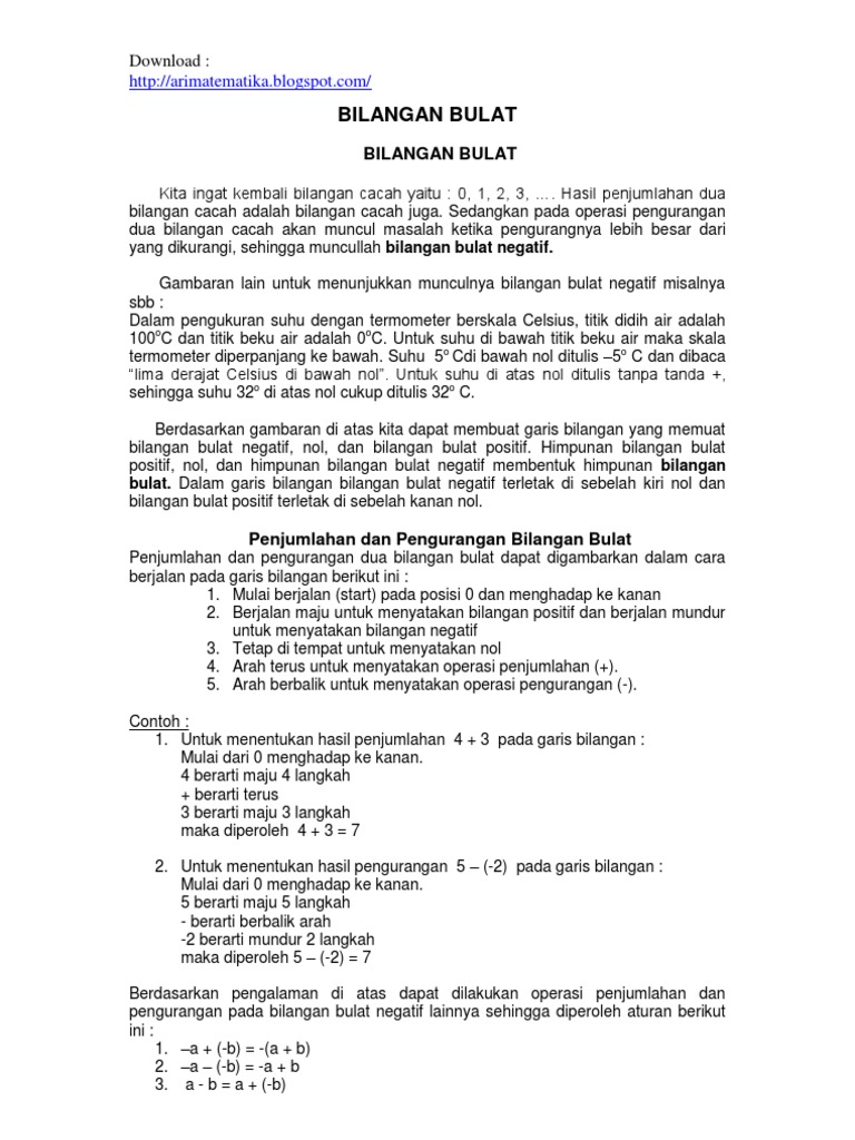 Ringkasan Materi Dan Contoh Soal Smp Operasi Hitung Bilangan Bulat